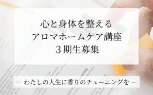 12月から、第3期生の講座がスタートしました!「アロマ」と聞くと、 ・いい香り・リラックスそんなイメージを持つ方が多いかもしれません。この講座で大切にしているのは、香りの知識を増やすことよりも、香りを通して、自分の心や体の声に気づいていくこ...