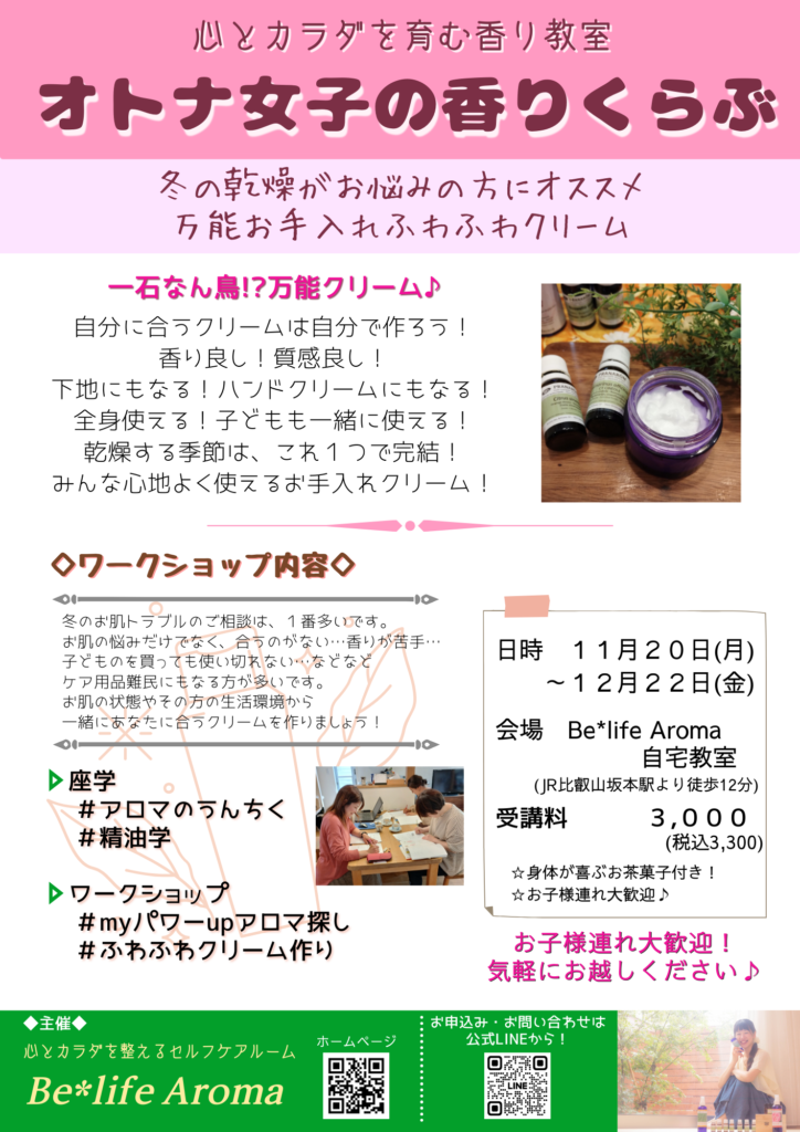 冬の乾燥対策!万能お手入れクリームワークショップ