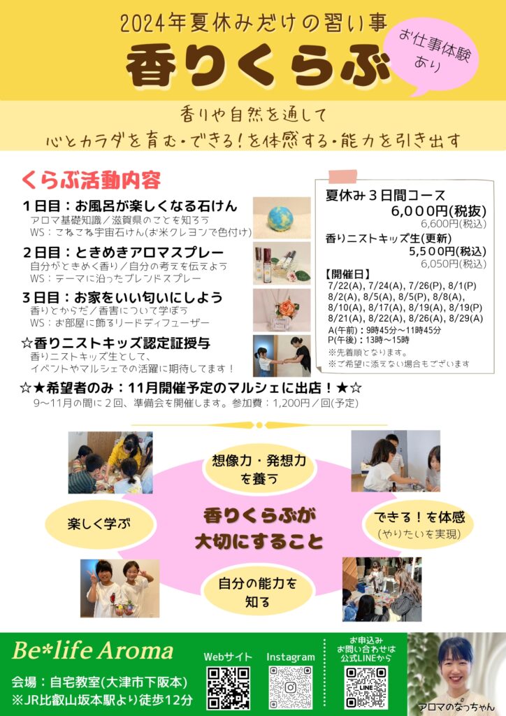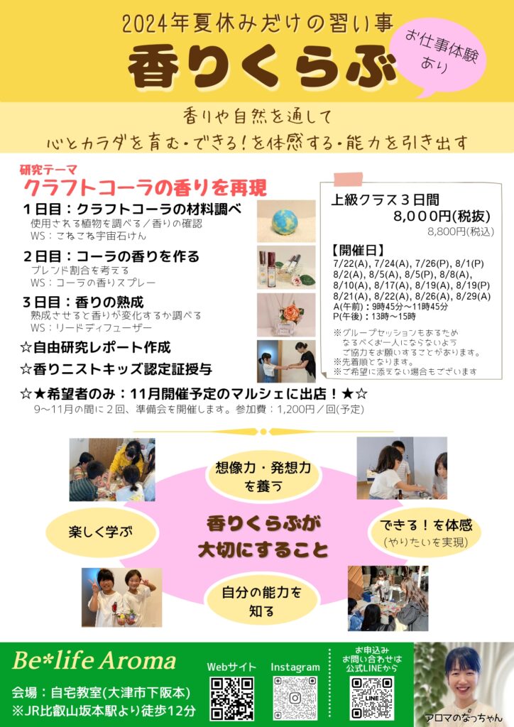 夏休みも香りくらぶを開催します!