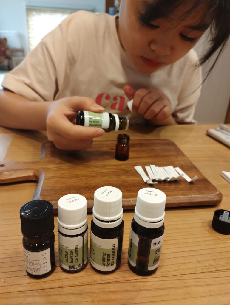 使い慣れない精油も多いので、子どもたちにはちょっと難しすぎるかな…って心配してました。