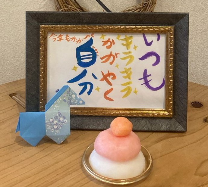 さらに、金屏風に来年の抱負を筆ペンアートで表現しました。言葉を選び、自分の気持ちと向き合う時間にもなりました。